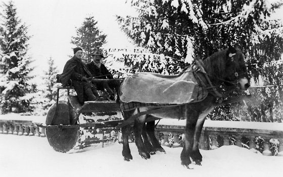 Die schwere Fuhr wurde durch zwölf Pferde der Fuhrleute Fritz Roth und Ulrich Schild gezogen, dabei gab das Schild «Rothschild & Co» unter Weinkennern zu schmunzeln. Auf dem Weg zum Oberen Gletscher gab es zu Isch einen Halt und es wurde fotografiert. Der Transport dauerte drei Tage.