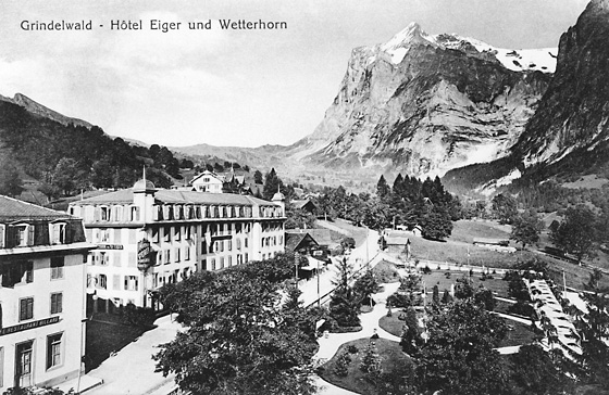 Der Eigergarten vor dem Grandhotel Eiger, eröffnet 1905. Eine elegante Anlage mit Bassin und Spritzbrunnen, an der Stelle des heutigen Minigolfs. An schönen Sommerabenden spielte die Kurkapelle. Noble Damen und Herren flanierten im Park.