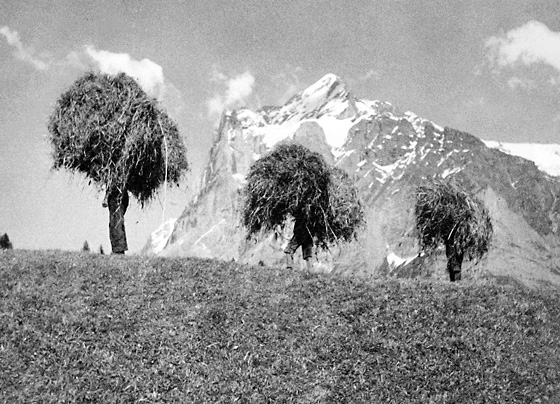 Es gebe in Grindelwald noch keinen einzigen Heu- und Erntewagen, schrieben Besucher 1905 erstaunt. Alles Futter werde noch auf dem Rücken eingetragen. Zum Glück seien die Scheunen meist nicht allzuweit entfernt.